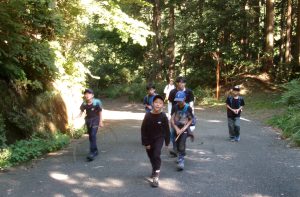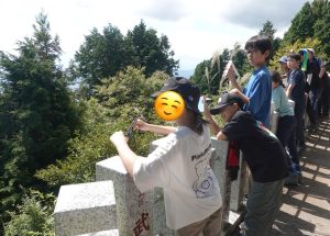朝早くに集合し、大山頂上に向けて歩きました。途中に休憩をはさみながらも全員が頂上まで登りきることができました。