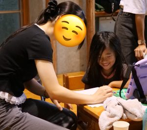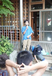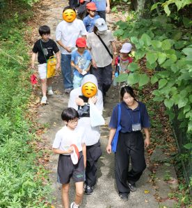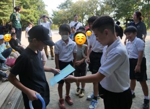 顔合わせの際にはお互いに緊張をしていましたが、アイスブレイクを通して自己紹介をしていくうちに打ち解けていきました。お互いに打ち解けあったところで、自然について学ぶため自然環境保全センターに向けて出発したのですが、休館だったため初等学校の周りの自然を歩いて生き物を観察して学校に戻りました。学校に戻った後は、最近里山に姿を現すようになって人に危害を加えたり、農作物を荒らしてしまう野生動物の状況について原因と対策を考えたり、絶滅危惧種を保存していくにはどうししたらよいかなど話し合いを行いました