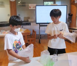 自分たちで炭起こしをした後、野菜、お肉、味噌おにぎりと一緒に串に刺したマスを網で焼いてバーベキューを楽しみました。「マスがふわふわでおいしい!」「BBQをできてすごく楽しかった!」等、子ども達からもうれしい感想が聞かれました。