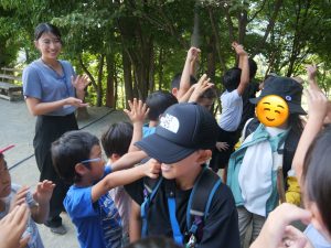 マスがぬめぬめしており、つかみづらくて難しそうでしたが、頑張って何度も挑戦して捕まえることができていました。激しく捕まえようとするあまり、洋服が濡れてしまう児童もいましたがとても楽しそうにつかみ取りをしていました。