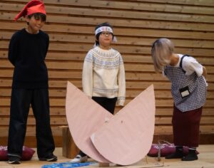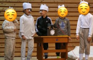 児童たちはこの日のために外国語の授業の時間や休み時間に、たくさん練習を重ねた他、劇に使う道具の制作やスピーチの原稿・スライド作りに励みました。