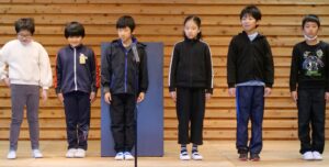 十八番朝会の後には表彰を行いました。英語検定、数学・算数検定に挑戦した児童が表彰されました。学年にとらわれず上位の級を目指して頑張っている姿は、ほかの児童にとっても大きな刺激になったようです。
