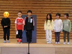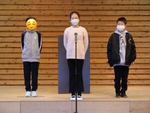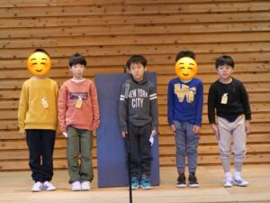 第1部では1・2年生の劇はとてもかわいらしく、3・4年生の劇は皆が役になりきり、5・6年生のスピーチでは調べた国の挨拶から始まる個性豊かな外国語発表でした。