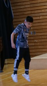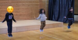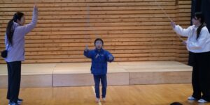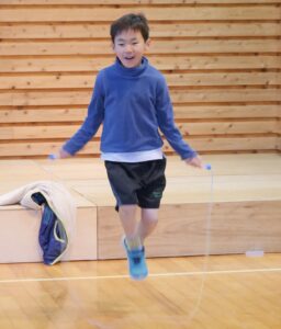 1人目は、縄跳びで前跳びをしたあと大縄を回している中で縄跳びをしてくれました。