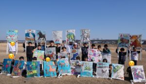 最後に5・6年生が大凧を飛ばすお手伝いに入りました。風が弱く惜しくも飛びませんでした。来年の凧揚げでは飛ばせることを期待しています。