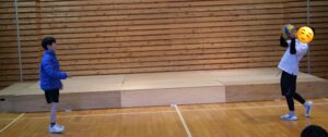 1組目は、バレーを連続でラリーをしてくれました。二人で息を合わせてボールを打ち合うのは難しいことでしたが、安定した回数をこなすことでできていました。