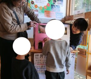 博物館からお借りした昔の道具も使いながら脱穀を行いました。昔の道具の使い方に苦戦したり、真剣にお米をとれるように取り組んだりと集中している姿がみられました。