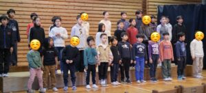 今年度の十八番朝会も今回合わせてあと2回です。今月は9名の児童が発表してくれました。縄跳びを100回跳んだり、キャッチボールやバトミントンでラリーを続けたり、フラフープを500回連続して行う児童もいました。さらに、フラフープをしながら歩いたり、同じくフラフープをしながらあっちむいてほいをしたりする楽しい発表もありました。普段の発表にちょっとした動作を加えるだけでも一段と難しい技になりますが、自分で挑戦して成功できたことに素直に喜ぶ姿が印象的でした。