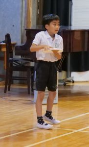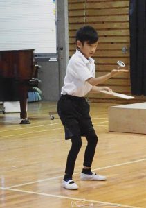 2学期始めの十八番朝会では5名の児童が発表をしました。夏休み中にコマ回しができるようになったという児童が何度も練習をして、この日の本番に挑んでいたのが印象的でした。皆どんどんいろいろなことに挑戦してほしいと思います。